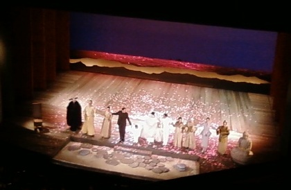Il difetto maggiore mi è parso di rilevarlo nella regia, di Giorgio Ferrara, e nelle scene, di Gianni Quaranta, entrambe fredde e stilizzate, incapaci di assecondare il pathos drammatico della partitura, e che anzi spesso l’affossano immobilizzando i cantanti, sparpagliandoli uno lontano dall’altro e tralasciando un’infinità di dettagli del libretto. Una scena paradigmatica sotto questo profilo è l’arrivo di Madama Butterfly, la quale dovrebbe entrare in scena accompagnata e riverita dalle amiche, che invece emergono da un piedistallo in fondo alla scena e lì rimangono immobili come belle statuine; così Cio-Cio-San, la novella sposa, entra da sola e rimane in mezzo al palco abbandonata da tutti. E mentre il libretto e soprattutto la musica prefigurano colori vivi e sgargianti, un tripudio di fiori e ombrelli colorati, tutta la scena è di un tristissimo e monotono marroncino-giallognolo, con soltanto un Budda a destra e una sedia stile Ikea a sinistra. Ugualmente la scena del matrimonio si svolge nell’indifferenza generale e praticamente senza nessuna movenza. Nel programma di sala si parla di una Butterfly “minimalista”: più che minimalista la definirei nichilista! (Omissis sul ridicolo arrivo dello Zio Bonzo appeso alle funi, ricordava certi allestimenti kitsch degli anni ottanta.) Un po’ meglio, sia per le luci che per i colori, il secondo e il terzo atto.