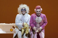 Nello spettacolo in questione non ci sono volgarità, quanto piuttosto costumi troppo farseschi, scene stranianti, mimi che compiono buffonate lungo quasi tutto il corso dell’opera, e poi il sosia di Rossini che ogni tanto si affaccia sulla scena senza motivo… insomma le solite stravaganze a cui siamo costretti a fare il callo da diversi anni. La musica naturalmente è l’apoteosi dell’arguzia, del divertimento e della gioia di vivere… lungi da me un Barbiere“barboso”! però una commedia non è una farsae neanche questo regista, Ruggero Cappuccio, sembra comprenderlo.