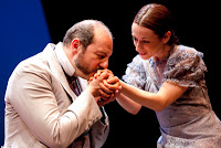 Ma, tornando alla recensione dello spettacolo, è presto fatta: ottimigli attori, soprattutto Vittorio Vannutelli, Annalisa Biancofiore e Mauro Mandolini; discreta la riduzione teatrale, di Ilaria Testoni (anche regista); pessime, come due patacche su un bel vestito, le due scene a sfondo erotico. Soprattutto la seconda, dove si simula un rapporto sessuale vero e proprio. Èun peccato che una messa in scena così buona sia rovinata, di proposito, da due cadute di stile così gratuite e volgari. E non mi vengano a dire che nelle Affinità elettive c’è effettivamente quella scena (alla fine del capitolo XI), perché Goethe la descrive con una delicatezza e una profondità introspettiva del tutto incompatibile con una muta e brutale “trasposizione” scenica!