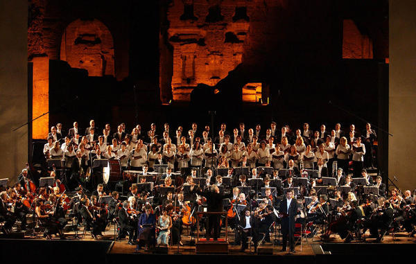 Resta infine, come ogni anno, il problema dell’acustica: pur avendo l’orchestra di fronte a sé, sembra di ascoltarla da una radiolina, a causa del vasto spazio e di una amplificazione insufficiente o inadatta; e poi c’è l’inquinamento sonoro proveniente dall’esterno poiché, soprattutto il sabato sera, la zona pullula di barbari(lo dico con tono scherzoso, ma fino a un certo punto) la cui “musica” da discoteca, seppur lontana, riesce, a tratti, a sporcare i pianissimodell’orchestra. D’altra parte sono degli inconvenienti sopportabili, considerata la bellezza del cielo stellato e delle imponenti rovine di Caracalla da cui si è circondati.