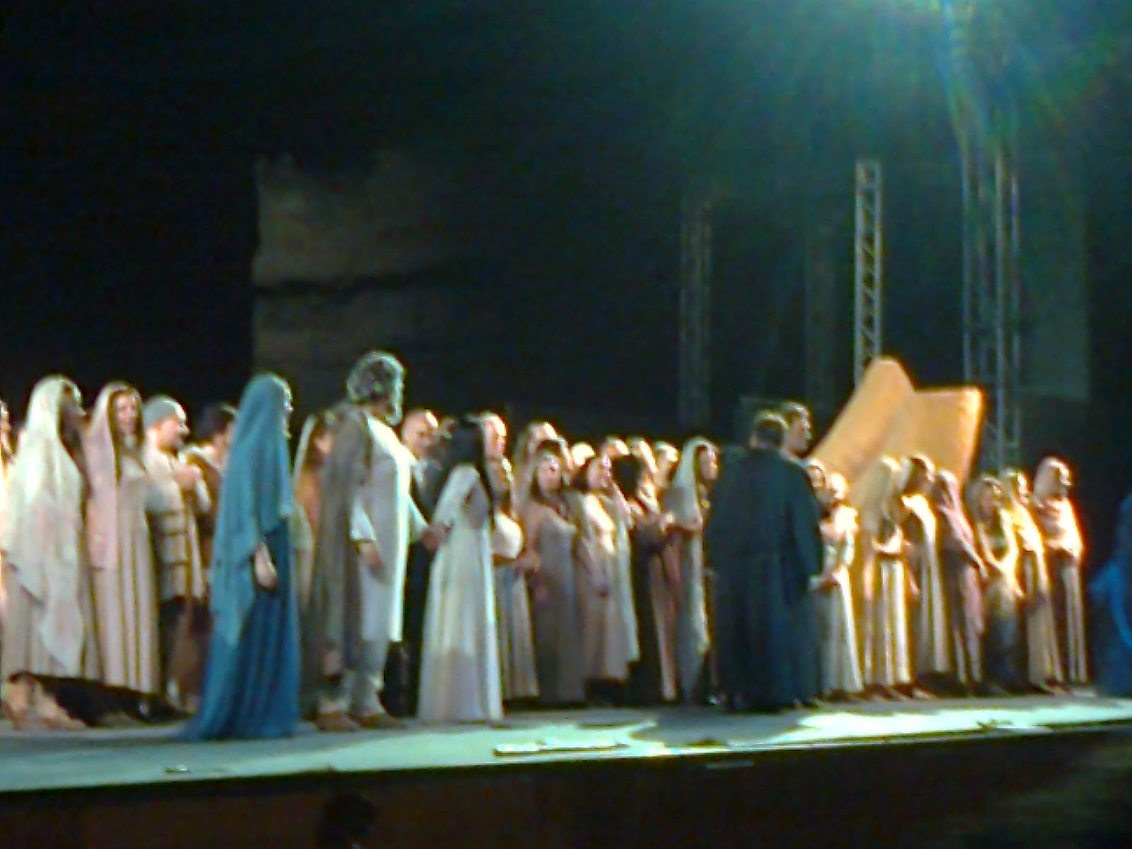Pollione è l’amante di Norma, con la quale ha avuto segretamente due figli, ma che poi tradisce, innamorandosi ‒ sinceramente, sembra ‒ di un’altra sacerdotessa più giovane, Adalgisa, che lo ricambia con altrettanta passione. Le due donne, da amiche e confidenti, si scoprono a un tratto rivali, con l’ira immediata e feroce di Norma, e il dolore di Adalgisa, la quale era ingenuamente all’oscuro di tutto. Il dramma è poi complicato dal fatto che Pollione è il proconsole romano in Gallia, mentre Norma è druidessa e figlia del capo dei Galli, i quali sono i procinto di ribellione contro i dominatori romani. (Detto di passaggio, il libretto di Aida non dico che è il calco di Norma, ma ha davvero molte analogie con questo, basta considerare le sostituzioni: Adalgisa → Aida, Norma → Amneris, Pollione → Radames, Oroveso → Il Re d’Egitto).Tornando agli interpreti di ieri sera, Julianna di Giacomo, nel ruolo di Norma, ha fornito una buona prestazione, senza particolari pecche, anche se personalmente in Casta diva, mi è parsa un po’ incerta (per quanto mi renda conto della difficoltà virtuosistica del pezzo, cantato per di più all’aperto); l’ho invece apprezzata molto di più nel prosieguo dell’opera. Carmela Remigio, come dicevo, è stata senz’altro la protagonista della serata: oltre al physique du rôleche pure fa la sua parte, si è dimostrata un’interprete credibile e appassionata, con qualità vocali eccellenti, sia nei pianissimoche nei fortissimo, che nelle agilità.Buona la prova del tenoreFabio Sartori (Pollione), anche se forse una forma atletica migliore gli gioverebbe dal punto di vista scenico; molto buona anche la prova di Riccardo Zanellato (Oroveso), ormai una presenza fissa del Teatro dell’Opera di Roma. Ottima infine la direzione di Gabriele Ferro, sia nella scelta dei tempi che nel bilanciamento dell’orchestra (per quanto a Caracalla c’è sempre il problema dell’amplificazione).