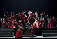Venendo alla rappresentazione di questi giorni, bene il tenore, Aquiles Machado, nel ruolo di Enzo: aveva l’accento e l’ardore dominghiani, anche se meno volume (applauso a scena aperta sulla bella romanza “Cielo e mar”); ottimo il basso, Roberto Scandiuzzi, nella pur breve parte del cattivo Alvise; discreta Ekaterina Semenchuk, soprano nel ruolo di Laura; molto meno bene la protagonista, Elisabete Matos, che aveva una voce voluminosa ma spesso stridente e con un forte vibrato (effetto gallina strozzata che, ahimè, allontana dalla lirica parecchi neofiti). Eccellente la direzione d’orchestra di Roberto Abbado. Veniamo poi alla regia e le scene e i costumi di Pier Luigi Pizzi (no, non siamo parenti). Le scene assomigliavano molto come atmosfera a quelle dell’Attila(c’è qualche connessione? a me non pare): Venezia sembrava un cimitero monumentale, tutto di un grigio metallizzato, sicuramente austero e aristocratico, ma assai deprimente e fuori luogo per buona parte dell’opera. Beninteso: Pizzi è stato un grande in passato, però oggi, con i suoi ottantadue anni, se non vivessimo in una società gerontocratica non penso che avrebbe tutti questi incarichi.
