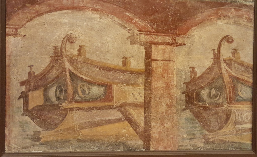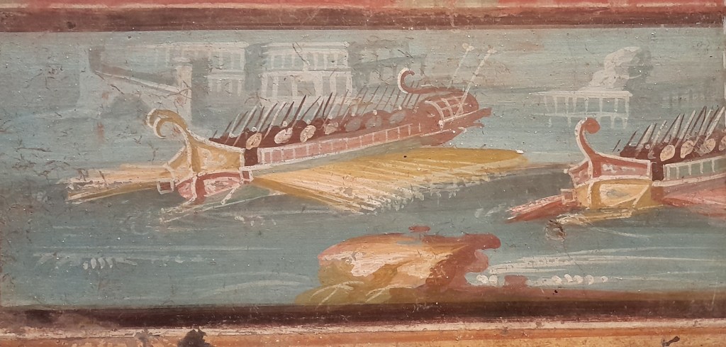 L’eruzione. Tutti sanno più o meno che nel 79 l’eruzione del Vesuvio sommerse Pompei, Ercolano e Stabia, e molti avranno visto film e documentari che ne raccontano qualche aspetto, tra cui il fatto che (spoiler) Plinio vi trovò la morte. Pochi sanno della dinamica più precisa degli eventi. In effetti non è semplice ricostruirla: tutto ciò che ci è rimasto di scritto ammonta a due lettere di Plinio il Giovane (nipote di Plinio il Vecchio e testimone oculare rimasto a Miseno), un paio di pagine di Dione Cassio e qualche riga di Svetonio. Oggi, rispetto a qualche anno fa, abbiamo anche moltissimi ritrovamenti archeologici e studi geologici abbastanza precisi che ci confermano e in alcuni casi correggono le testimonianze scritte. L’esplosione non fu accompagnata da colate laviche, il problema fu la quantità immensa di cenere e lapilli che, ricadendo dall’alto, sommerse o bruciò tutto. Plinio scese in mare con le quadriremi capitanando una sorta di operazione di protezione civile, aiutando la popolazione della costa a fuggire via mare. Plinio il Giovane accenna a quest’operazione in una lettera a Tacito, ma nei dettagli non ci dice quasi niente, se non che inizialmente Plinio puntò su Ercolano ma impedito dal mare dovette ripiegare verso Stabia, presso Pomponiano; nel ricostruirla ho cercato di immaginare qualcosa di plausibile (ma certezze storiche non ce ne sono).