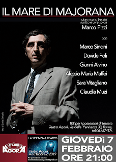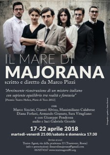Molti dei miei lettori avranno già letto il testo che ho pubblicato su Amazon, ma è veramente con grande piacere e una certa trepidazione che vi invito al Teatro Agorà dal 17 al 22 aprile per vederlo dal vivo con un cast di eccellenti attori. In questa riduzione per sette personaggi (l’originale è per 11), accanto al protagonista troviamo la sorella Maria, anima dolce e delicata; l’amico e collega Giovanni Gentile jr. figlio dell’omonimo filosofo; Edoardo Amaldi, fedele discepolo di Fermi, e il sanguigno Emilio Segré, con cui Majorana ebbe un lacerante screzio sulle leggi razziali proprio a ridosso della scoperta del positrone; infine la studentessa Senatore, a cui Majorana consegnò le sue ultime carte prima di scomparire.