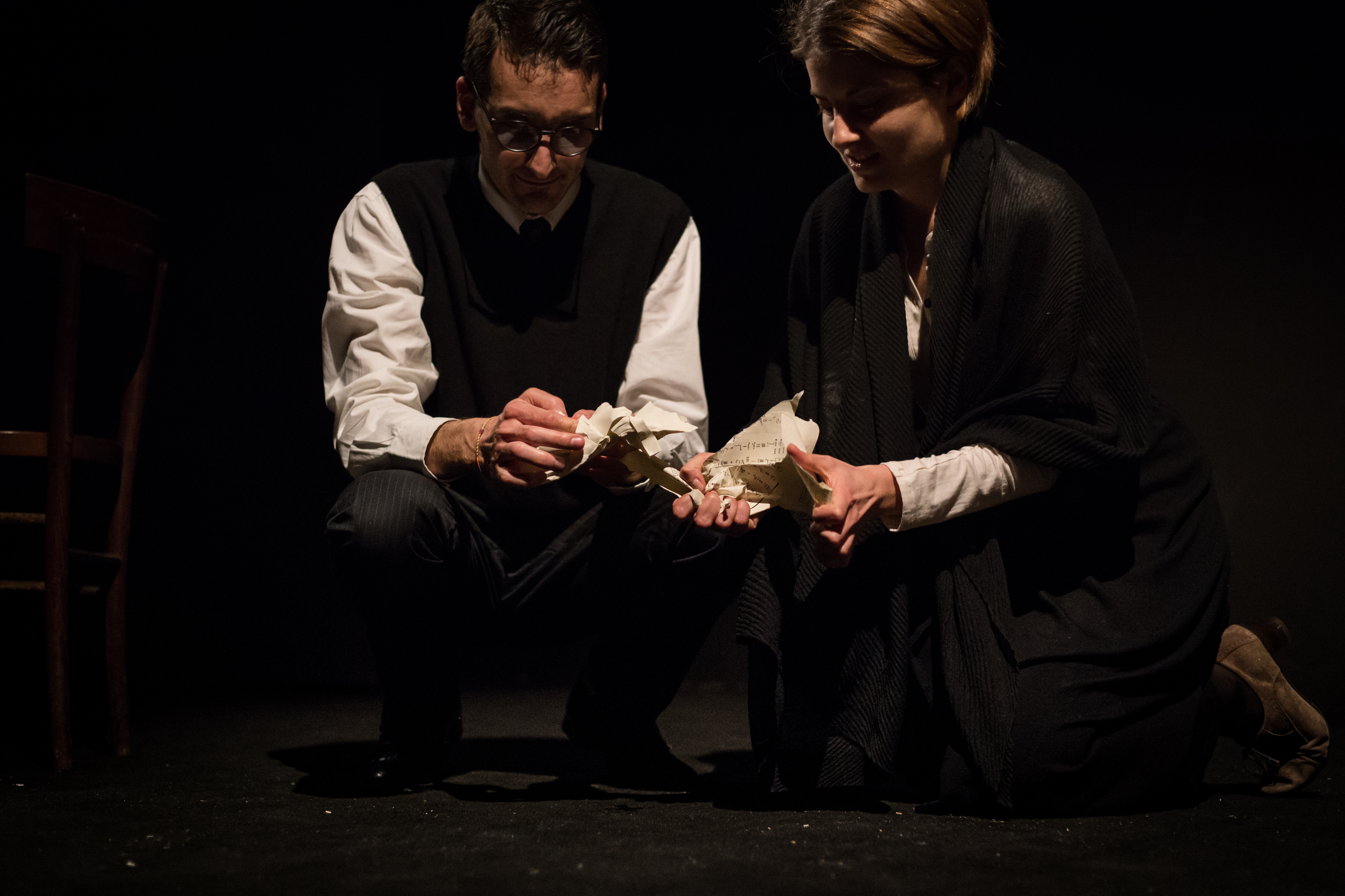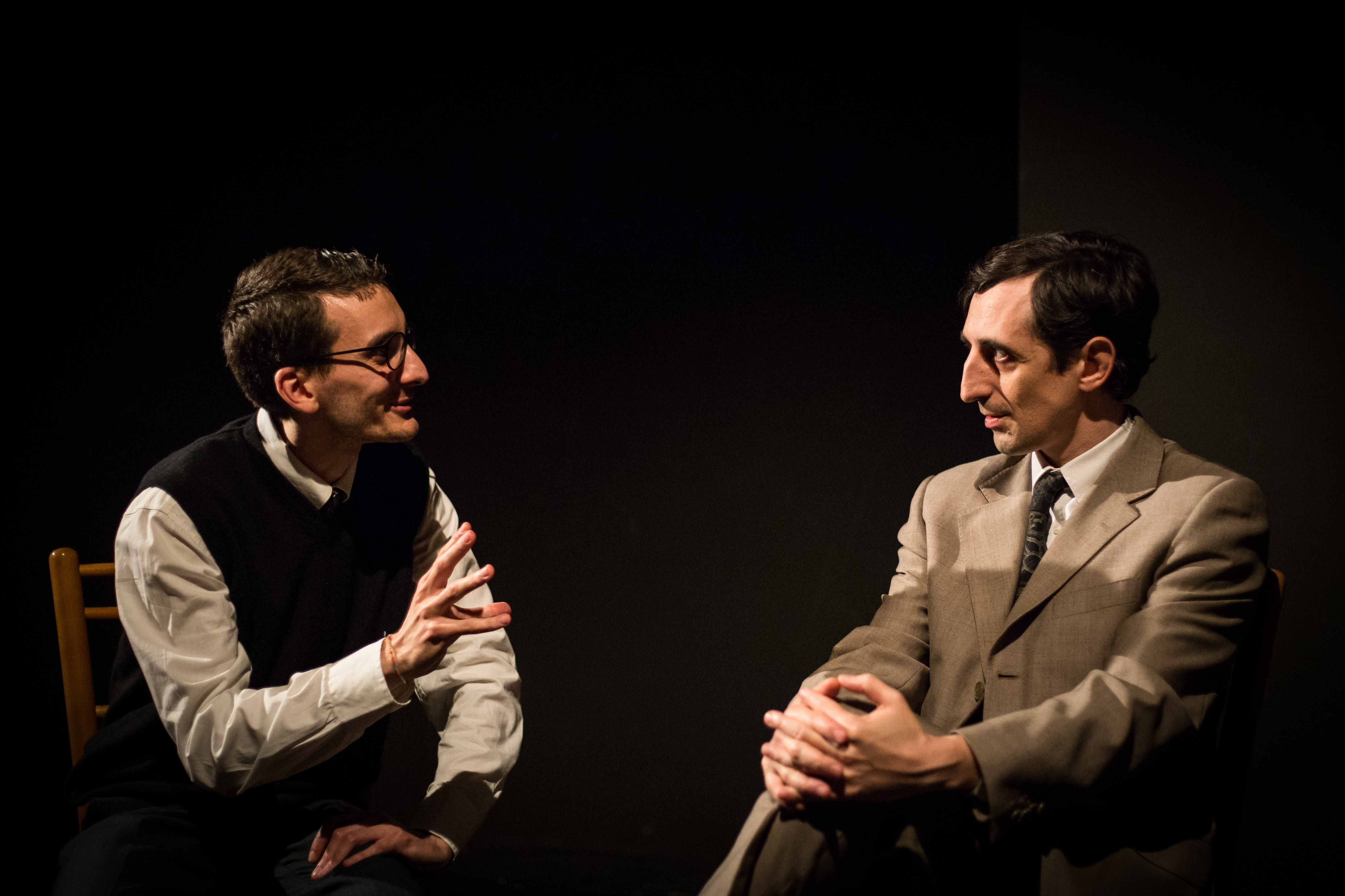 A lato: Marco Sincini nel ruolo di Majorana (ph. Sonia Simbolo, 2018).